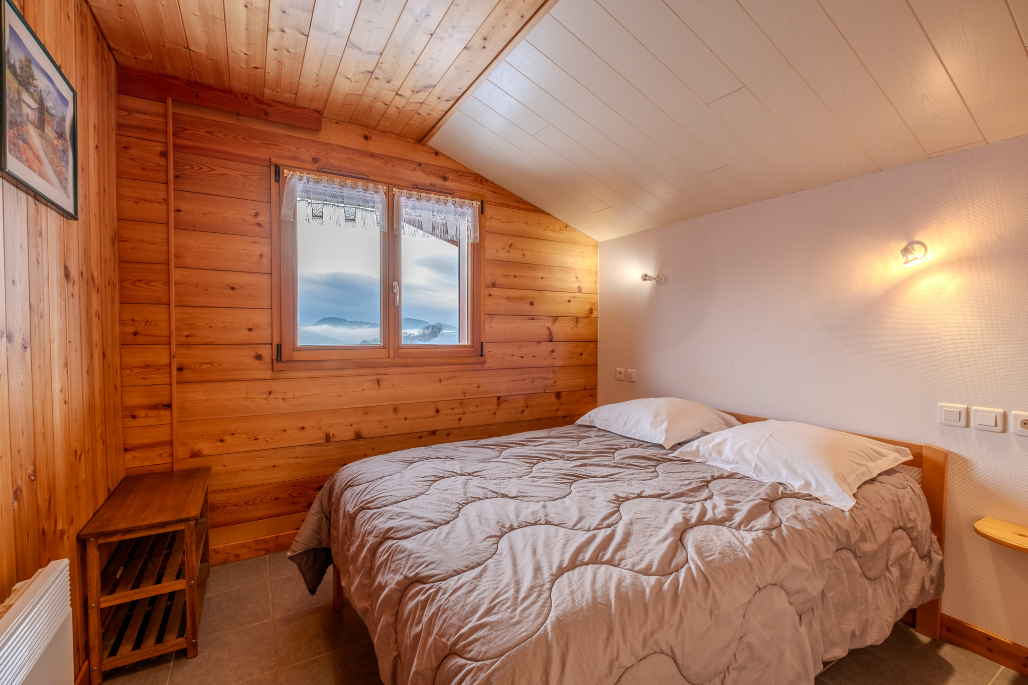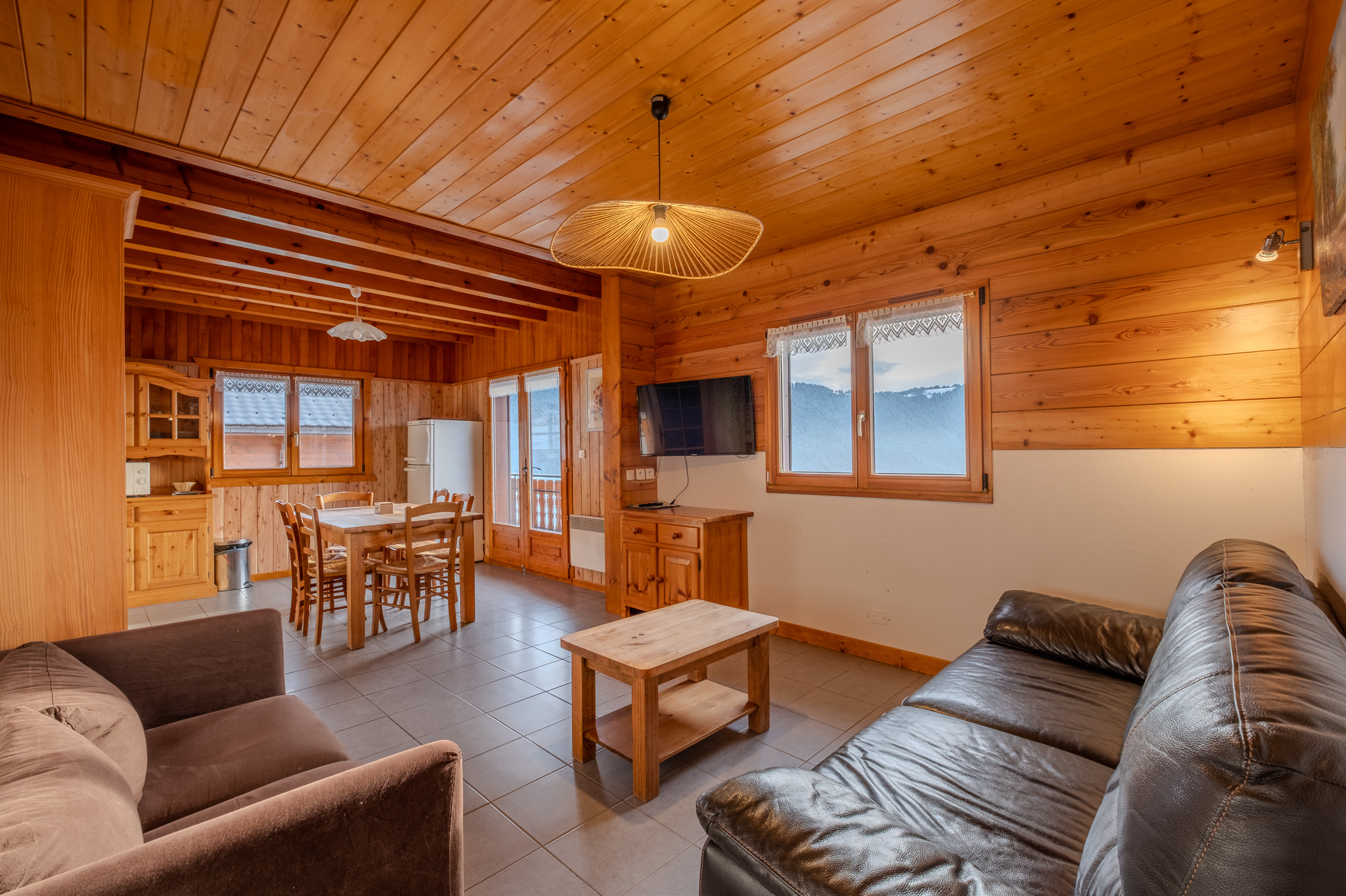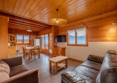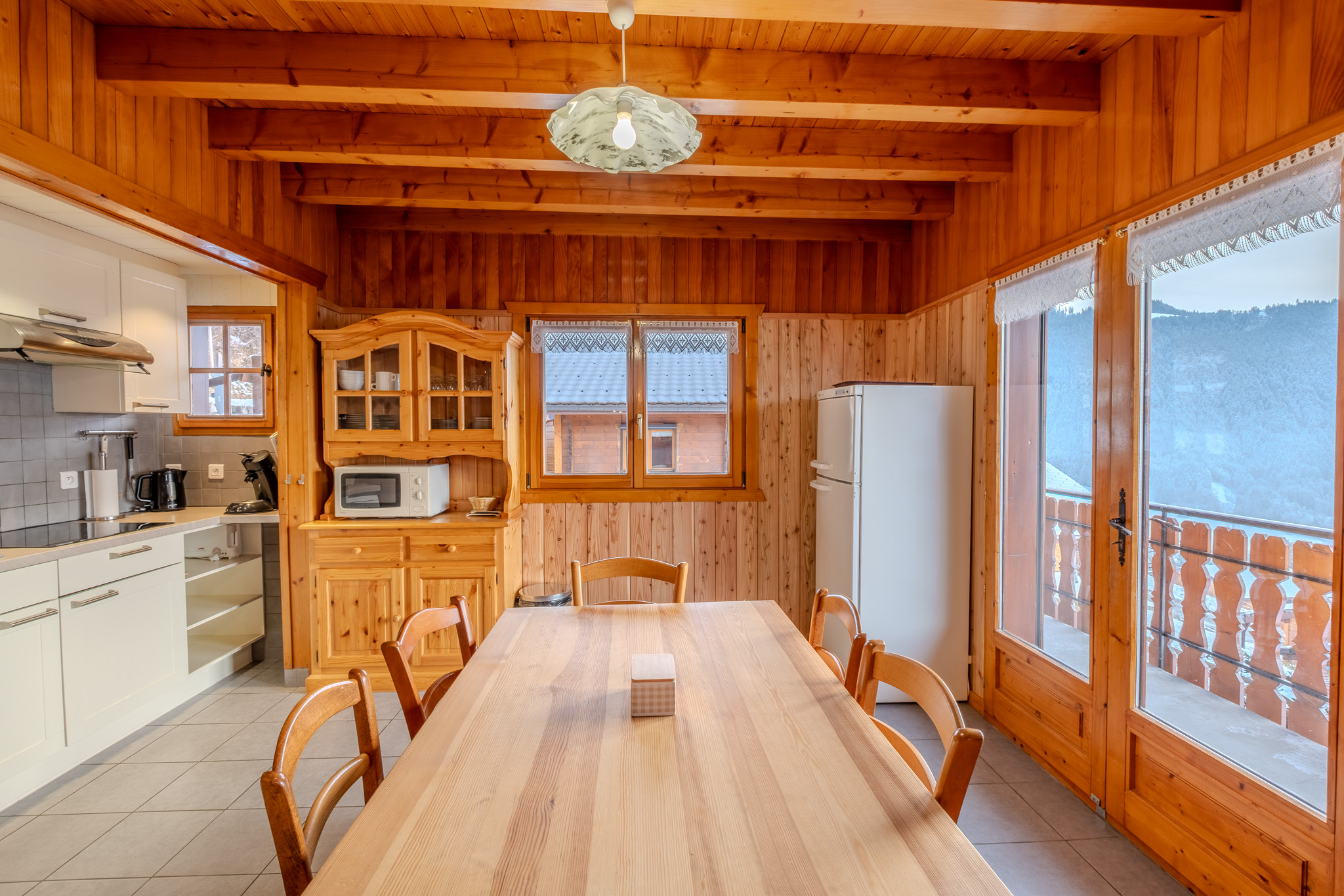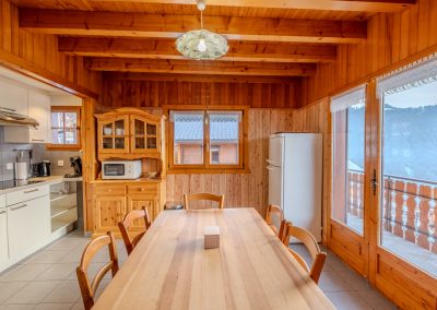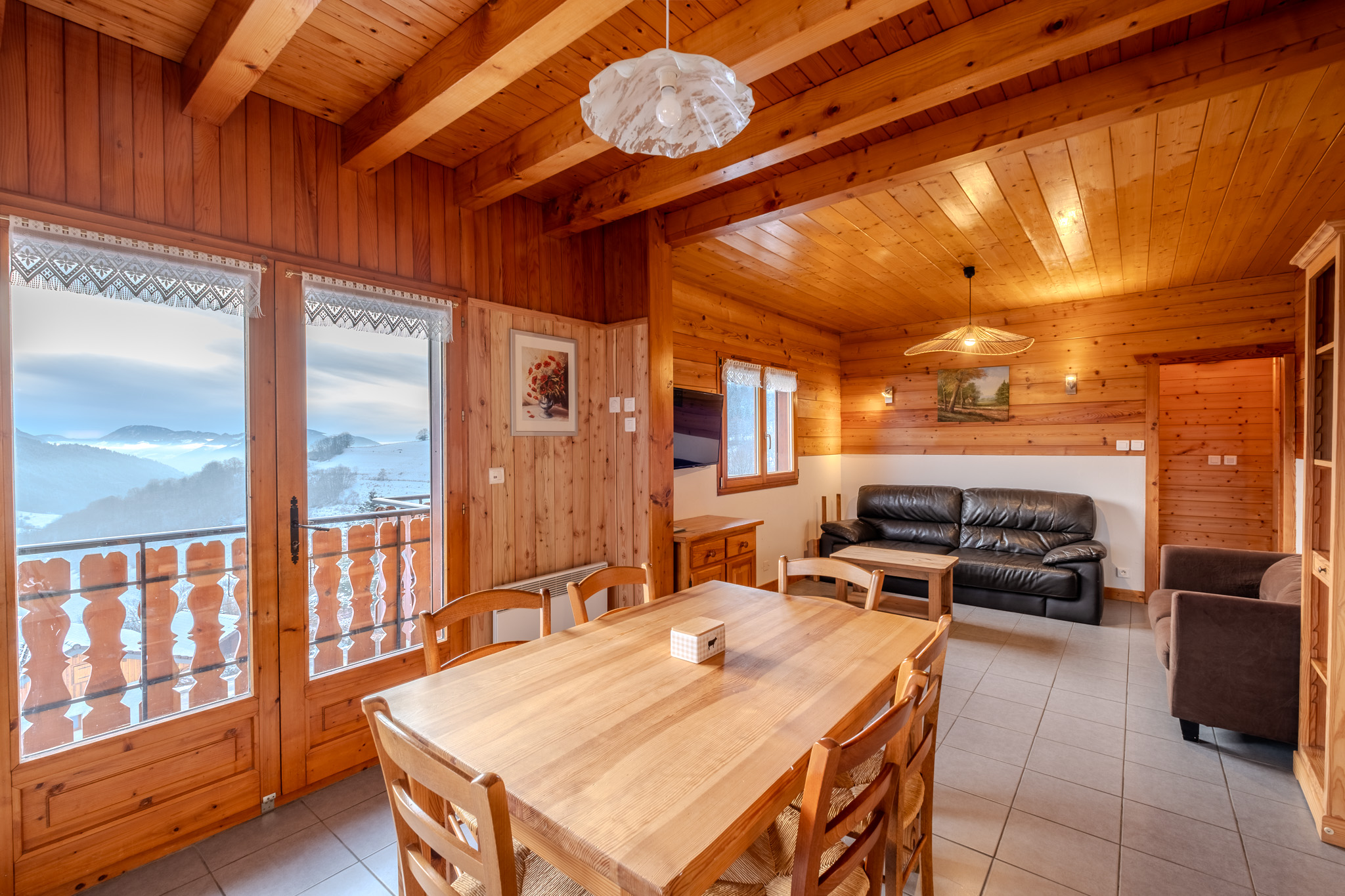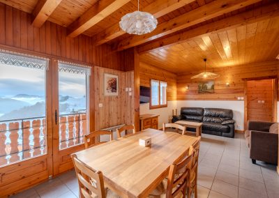 Le chalet dispose d’un balcon aménagé exposé plein sud avec vue sur la vallée et d’une terrasse.