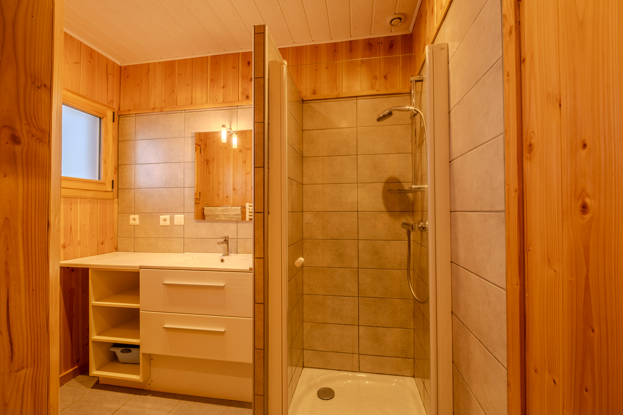Une salle de bains indépendante avec douche et lavabo / Sèche cheveux à disposition / Linge de toilette non fourni.